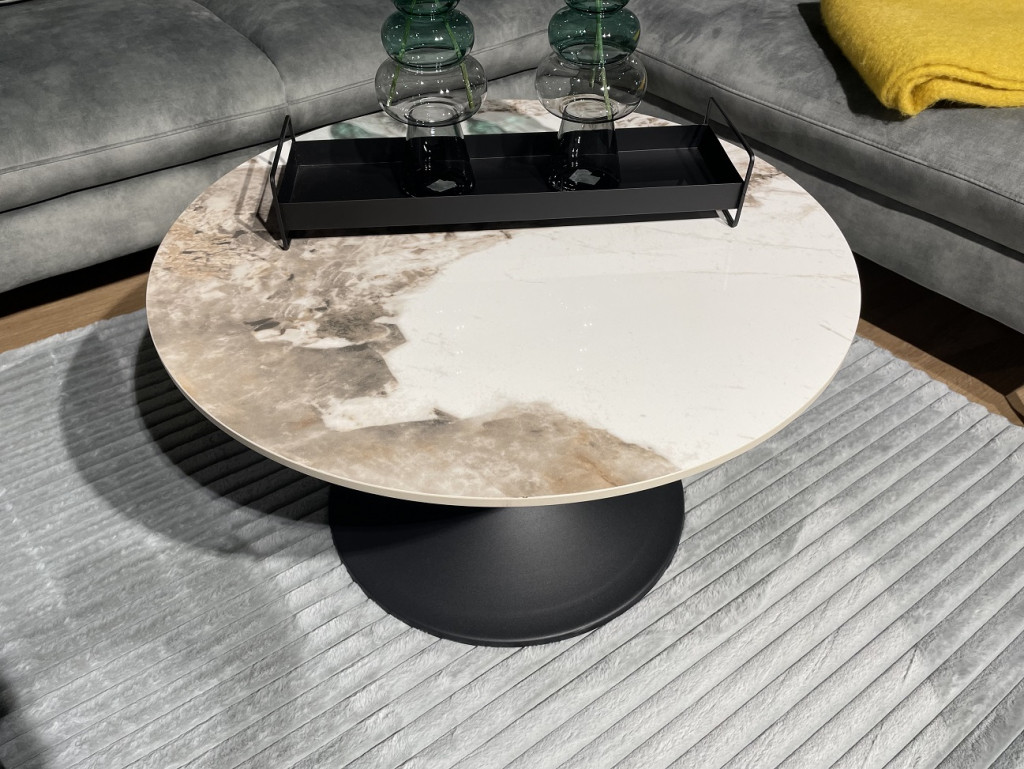 Platte in der Ausführung Keramik Marmoroptik Calcatta (glänzend), Gestell in Stahl schwarz lackiert
