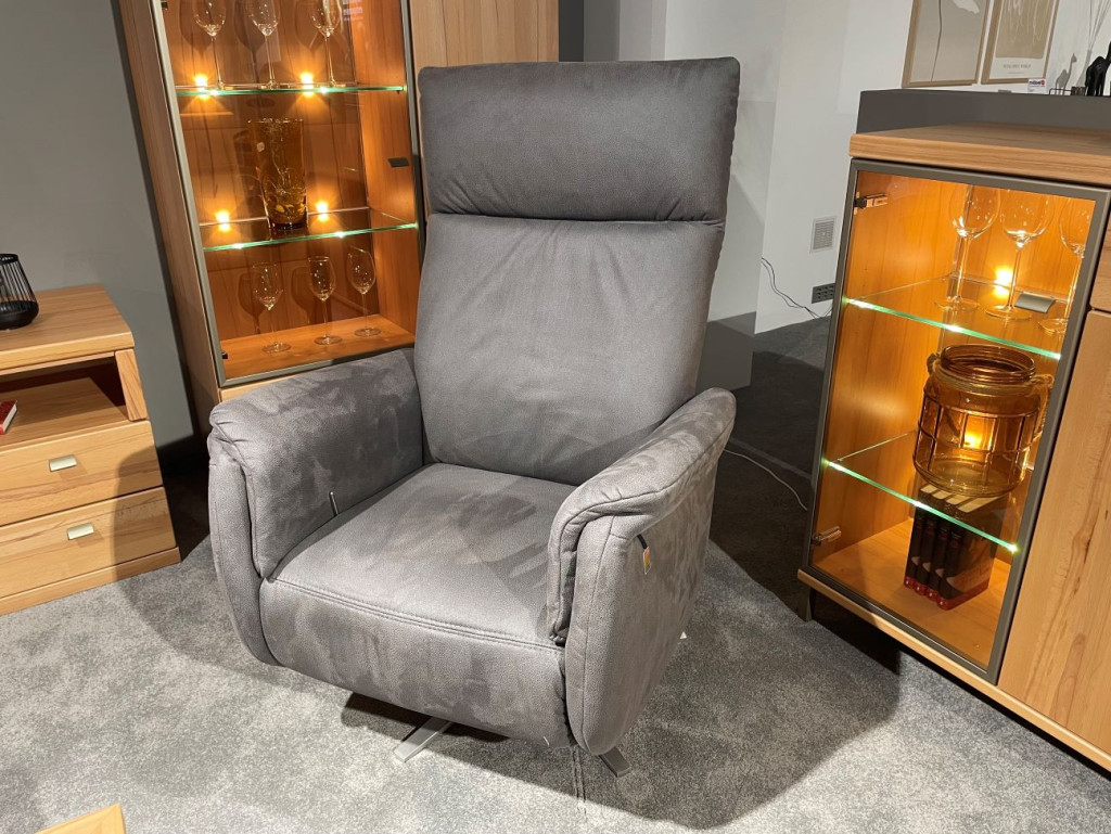 im Bezug Stoff Colorado 6 basalt, Rücken echt, Armteil 2 bodennah, Metallfuß rund, Alu matt, Höhe 3,5 cm, Rückenvariante Hochlehner, Kopfteilverstellung manuell, Motor/Touchbedienung, Sitzkomfort