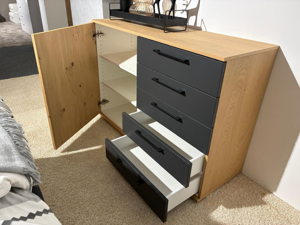 5 Schubkästen in Lack, Tür links furniert, Griff 90984 anthrazit matt neu A1, inklusive Vollauszug, Nr. 560165